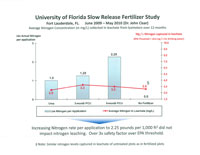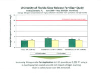 Increasing per application nitrogen rates to 2.75 lbs N per 1,000 ft² did not increase leachate levels, and average nitrogen levels were 3 times lower than EPA threshold.