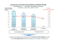Excellent turf color & quality were maintained using 25% less total nitrogen per year compared to a soluble urea program.
